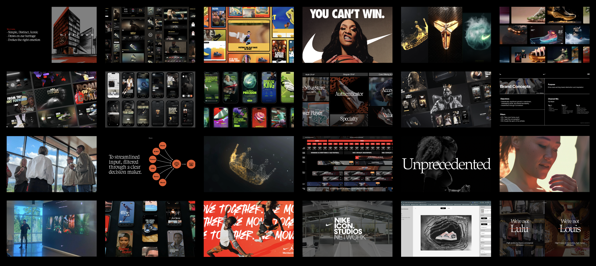 After presentation was shared directly to Nike’s CEO, the work enabled executive approval and funding for multiple generative AI pilot initiatives across the organization. It also established a clear north star for how AI would be operationalized and experienced across Nike’s marketing ecosystem.